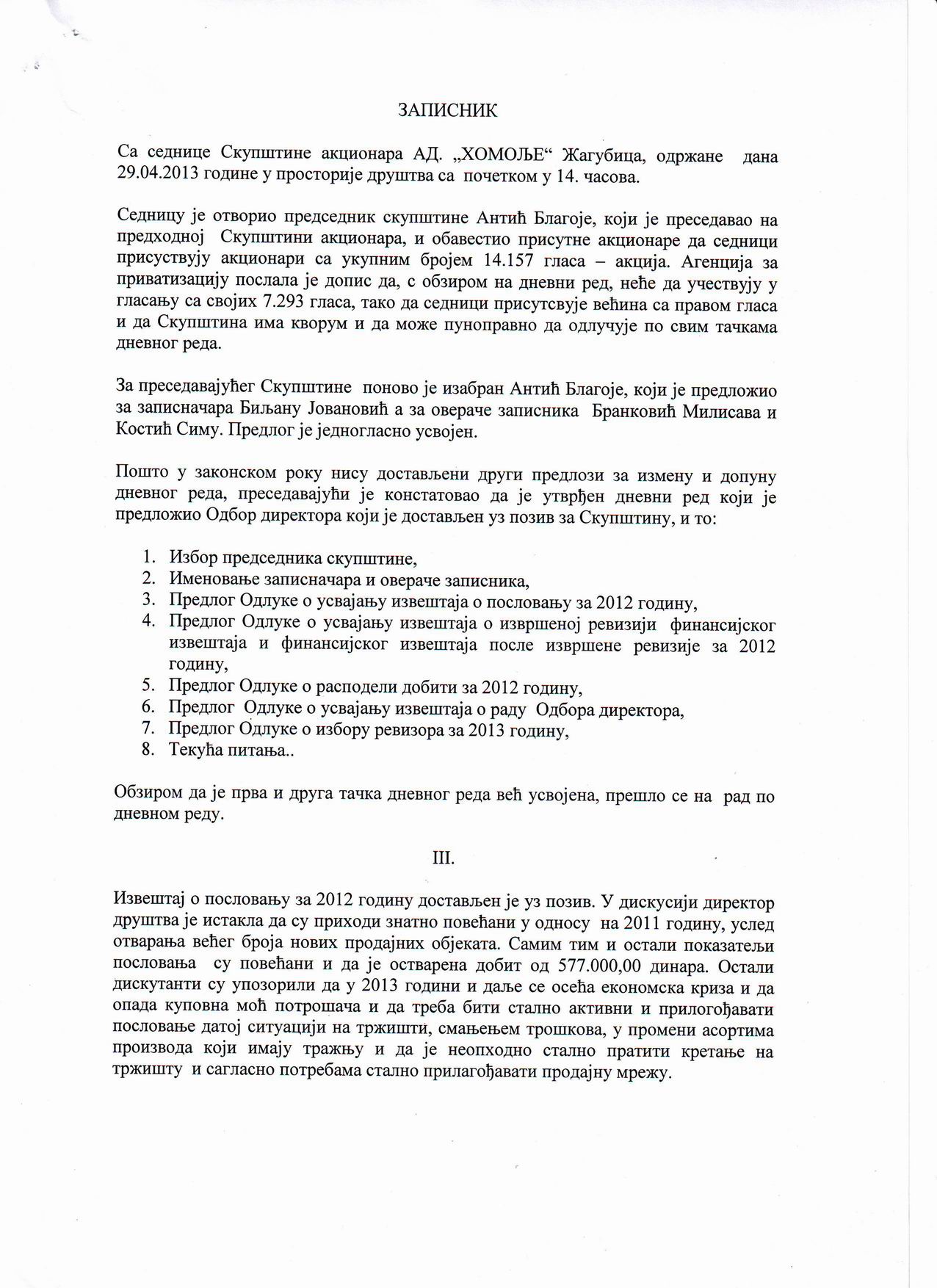 - Zapisniki sa prethodne Skupštine Acionara 29.04.2014. godine III strana