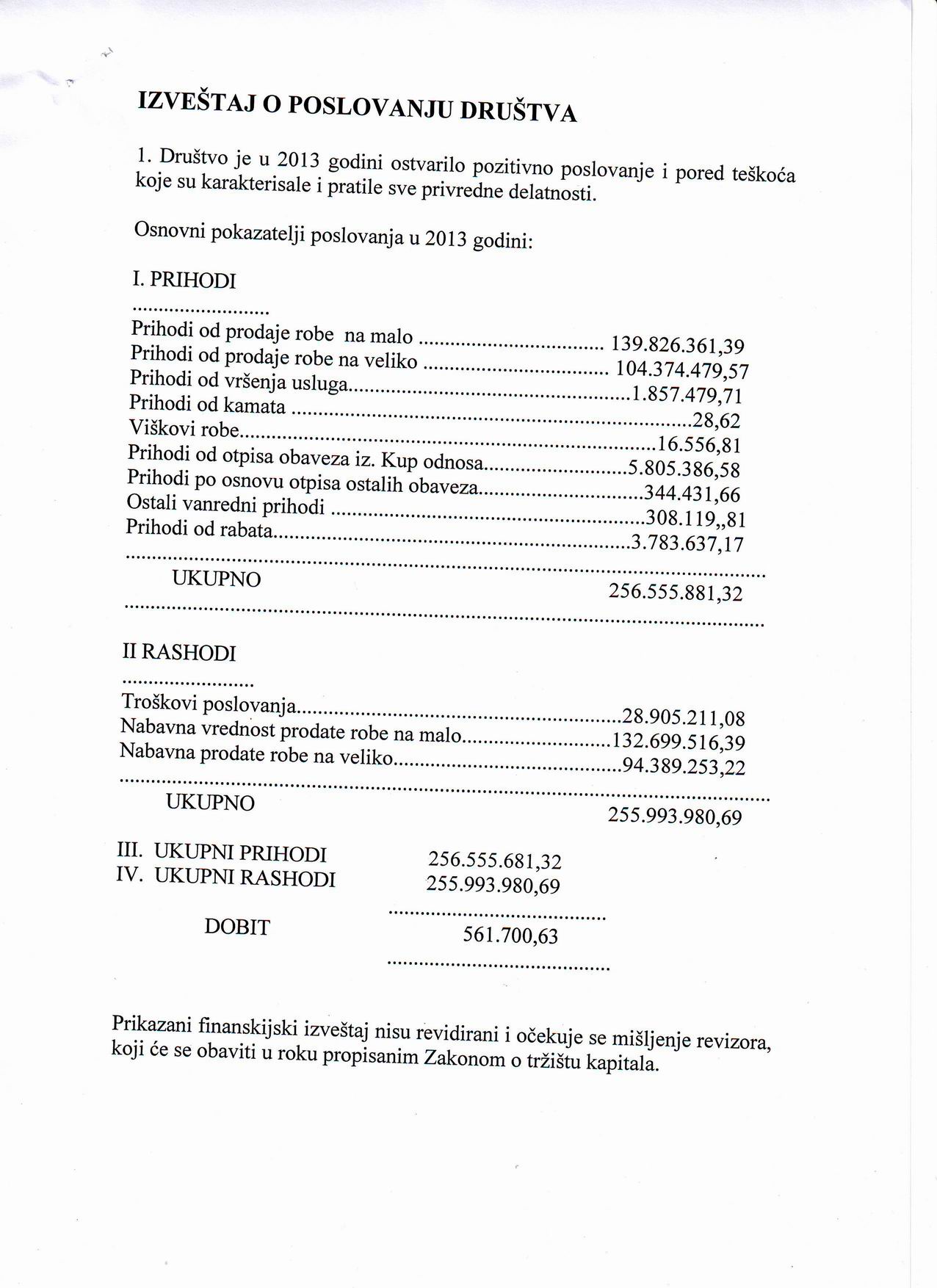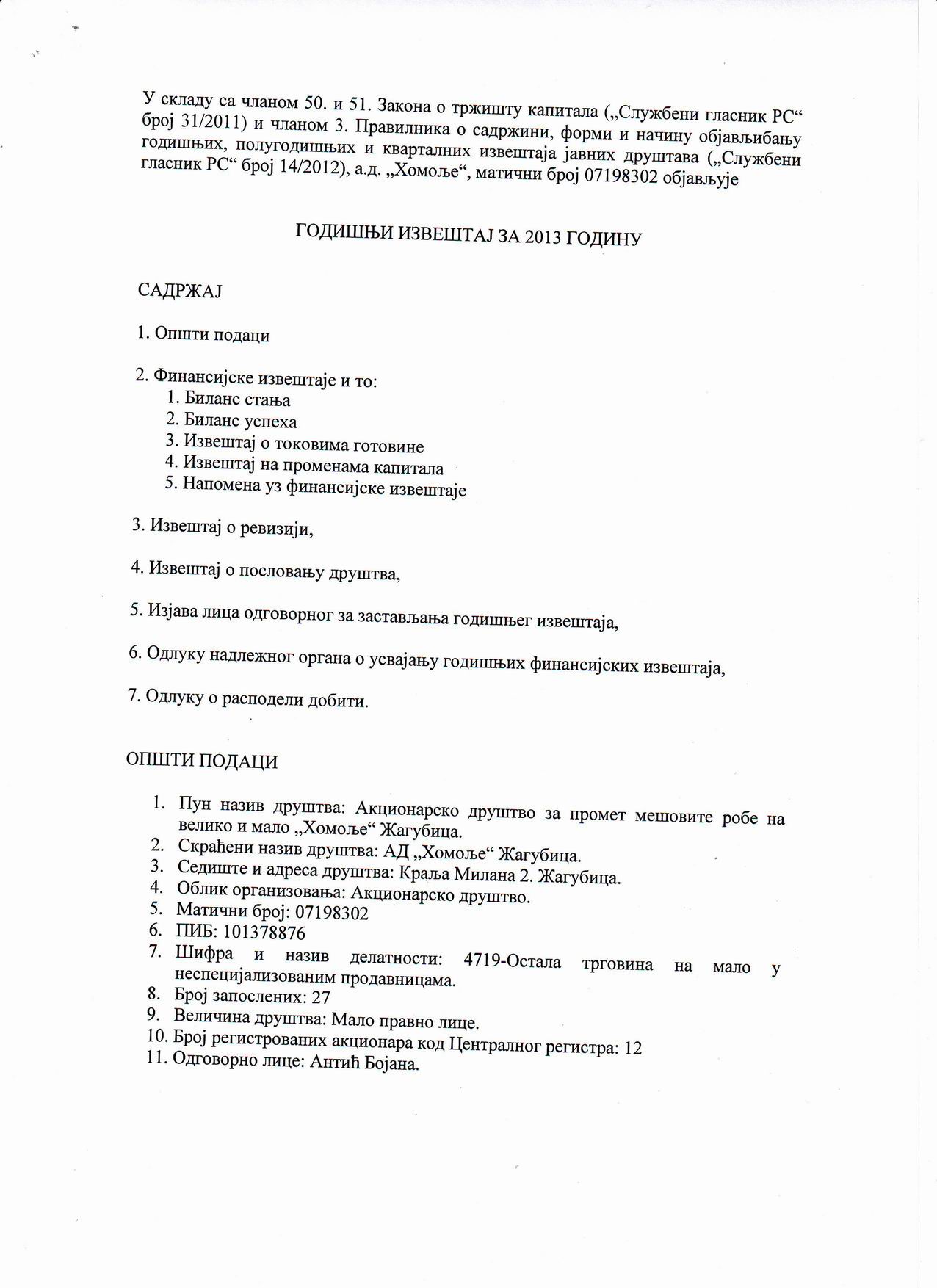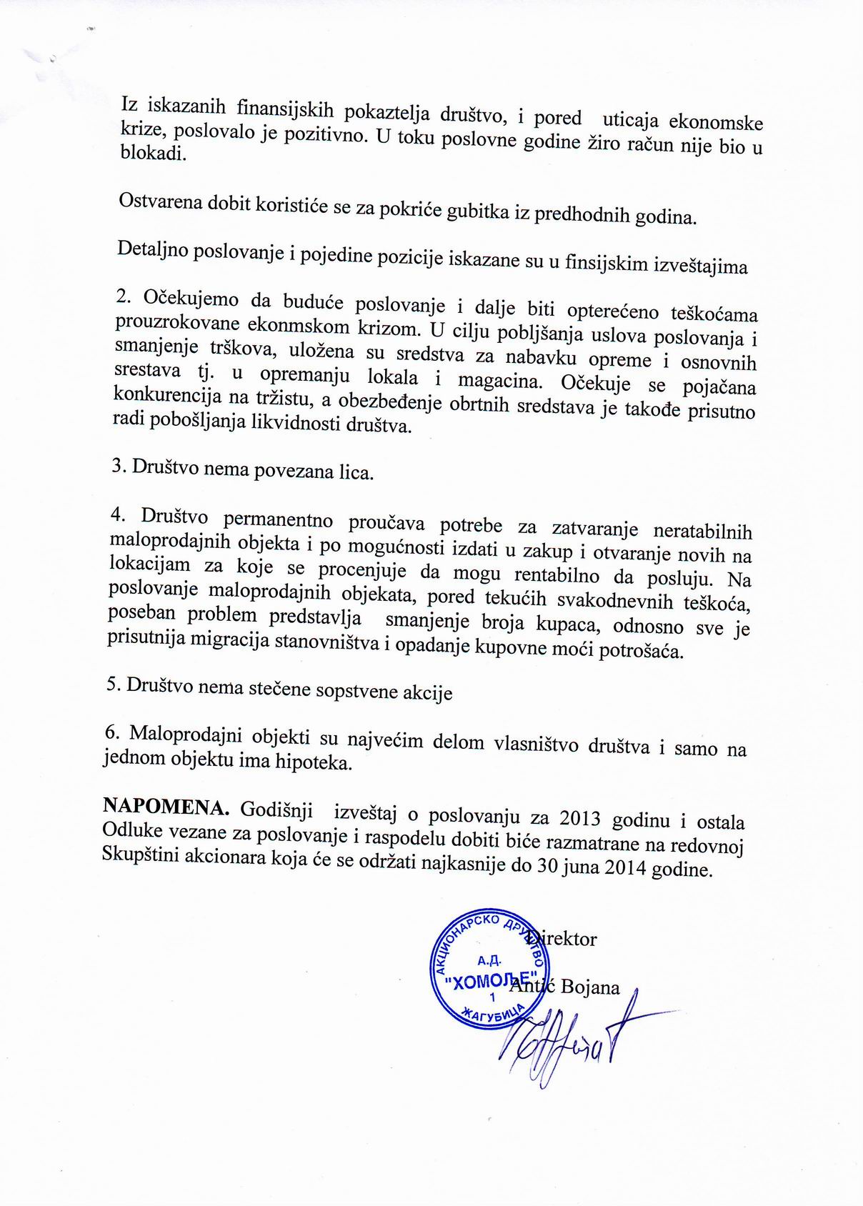 - Godišnji izveštaj za 2013 godinu o poslovanju društva I strana